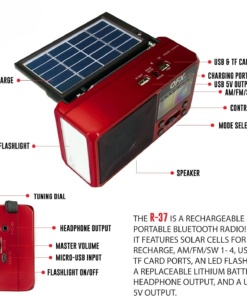 🎶Неговият компактен и лек дизайн прави радиото перфектен спътник за всяко пътуване или приключение. То е лесно за носене, а водоустойчивата му обвивка го предпазва от възможни външни влияния и непредвидени обстоятелства.