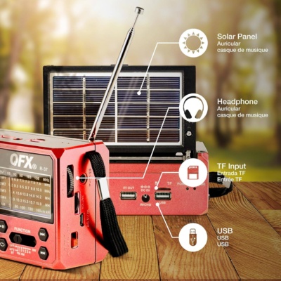🎶Соларната функция на соларно радио с Bluetooth и LED фенер, позволява да се захранва чрез слънчева енергия, което го прави идеално за къмпинги, излети или просто за ползване в градината.